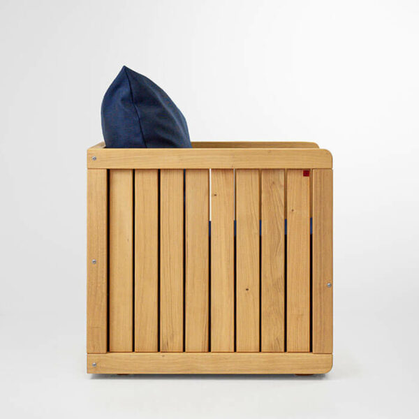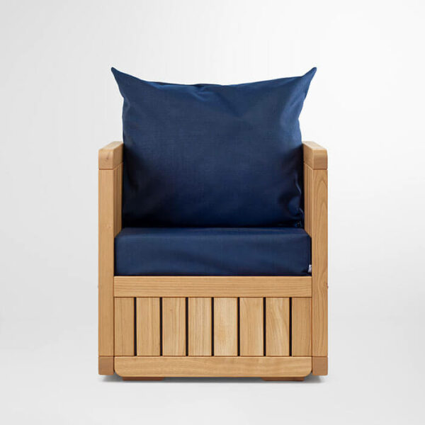 Les matériaux de la banquette extérieure DAIRI ont été sélectionnés pour leur résistance à l’extérieur. En finition naturelle ou colorée, personnalisez votre fauteuil avec notre sélection de toiles d’extérieures et créez une terrasse à vos couleurs.