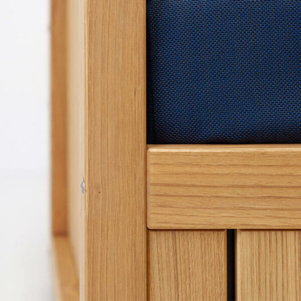 Pour le matelas, nous utilisons une mousse Dryfeel spécialement conçue pour l’extérieur. Sa structure alvéolée permet de laisser passer l’eau afin de limiter les risques de moisissures. Le rembourrage des coussins est adapté à une utilisation extérieure.